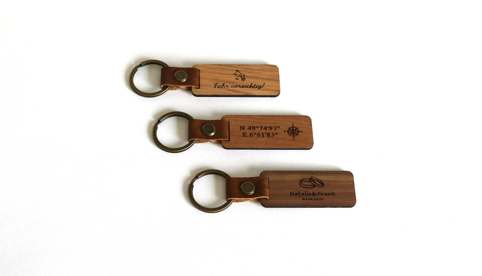 Familienanhänger, Koordinaten oder ein besonderes Datum, die Schlüsselanhänger mit persönlicher Gravur werfen alle Blicke auf sich.